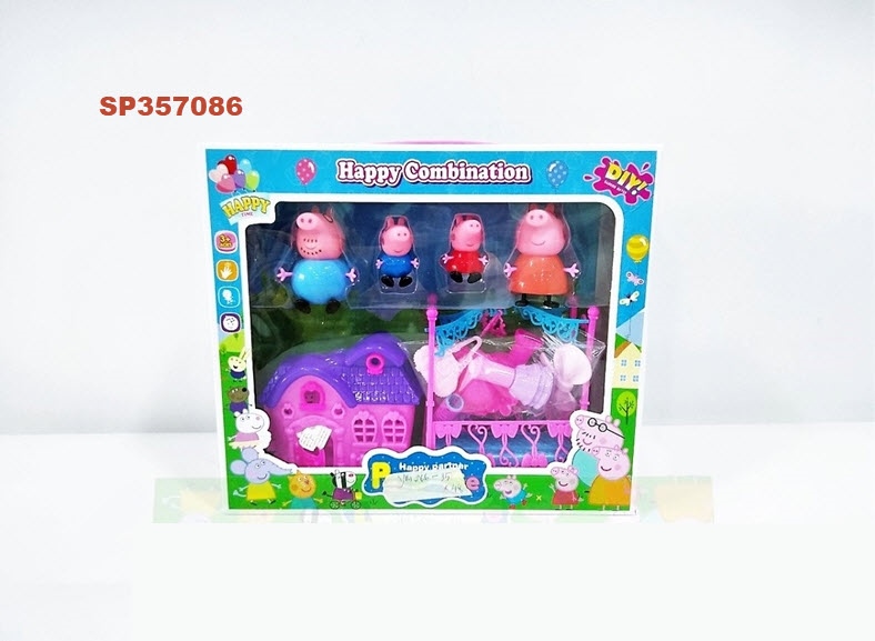 Hộp nhà heo hồng 4c + nhà, gường, đồ trang điểm, YM266-35